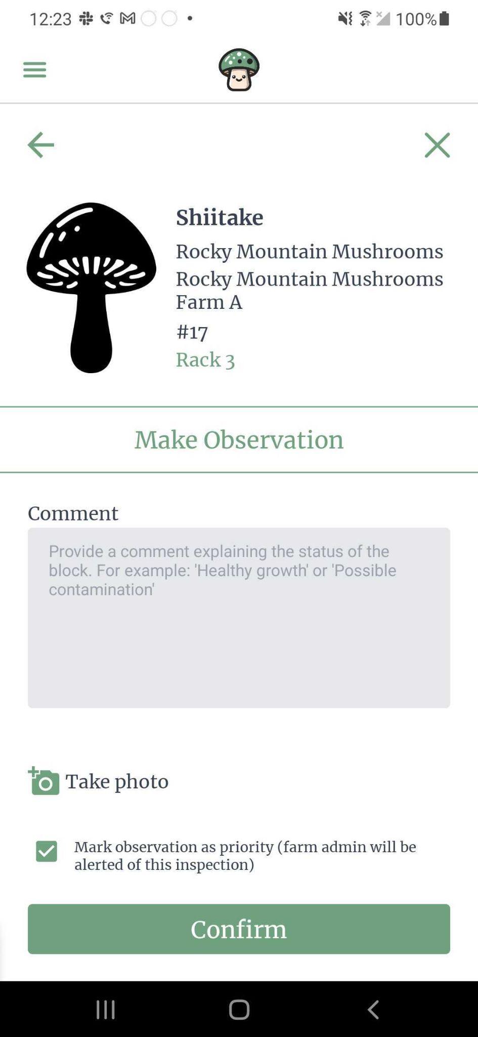 Kinoko allows you to track exactly what is happening to a block by creating observations on a block. If someone in your farm would like to note how a block is doing (whether good or bad), they can make an observation and add a picture, comment, and even mark it as a priority that someone needs to be notified of.