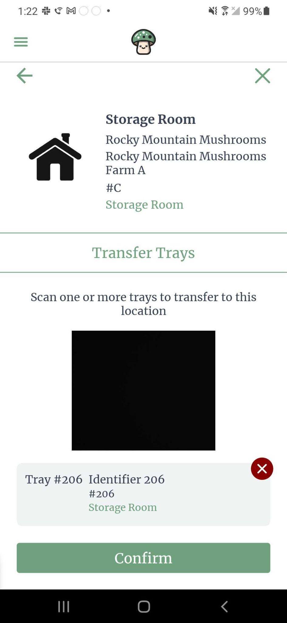 You can transfer trays to a storage room. When you scan a storage room, you will be able to transfer one or more trays at a time to the storage room.
