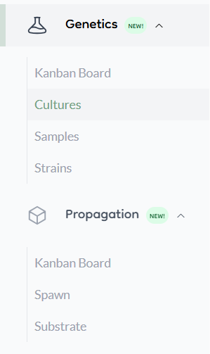 Kinoko's Genetics module helps you track and manage cultures, samples, and strains in your farm's genetic library.
